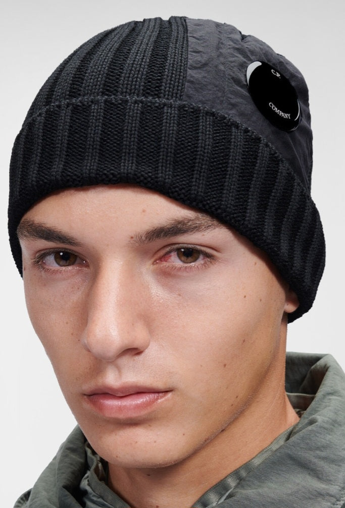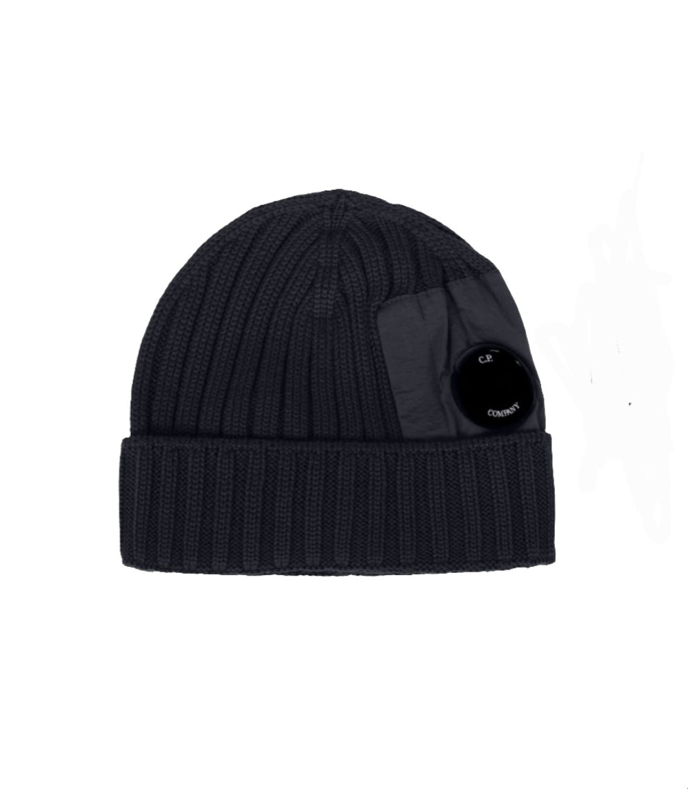 Cp Company Extrafine Merino Wool Mixed Lens Beanie In Navy