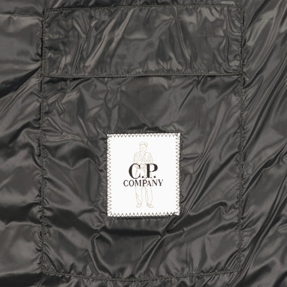 Short down jacket with a ribbed stand collar and a full zip fastening. The garment also features angular zipped hand pockets and the C.P. Company Lens detail. D.D.Shell range follows the same principal of construction as the previous season's pieces but uses an opaque 7 denier nylon outer shell. This finer uncoated nylon coupled with the Direct Down injection process makes the garments even softer and emphasises the motivation for the continued use of down garment.