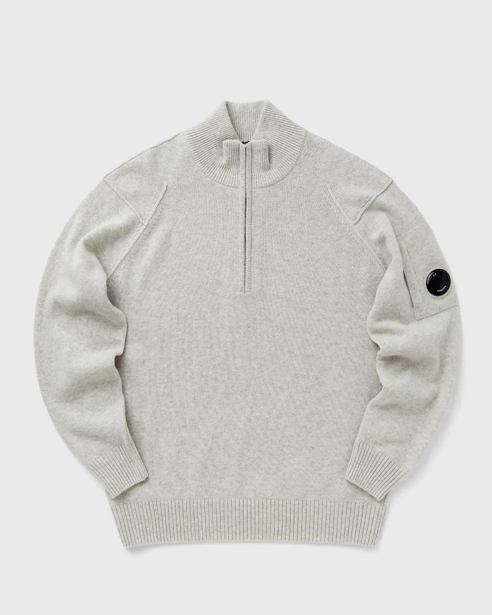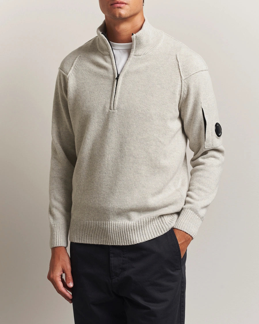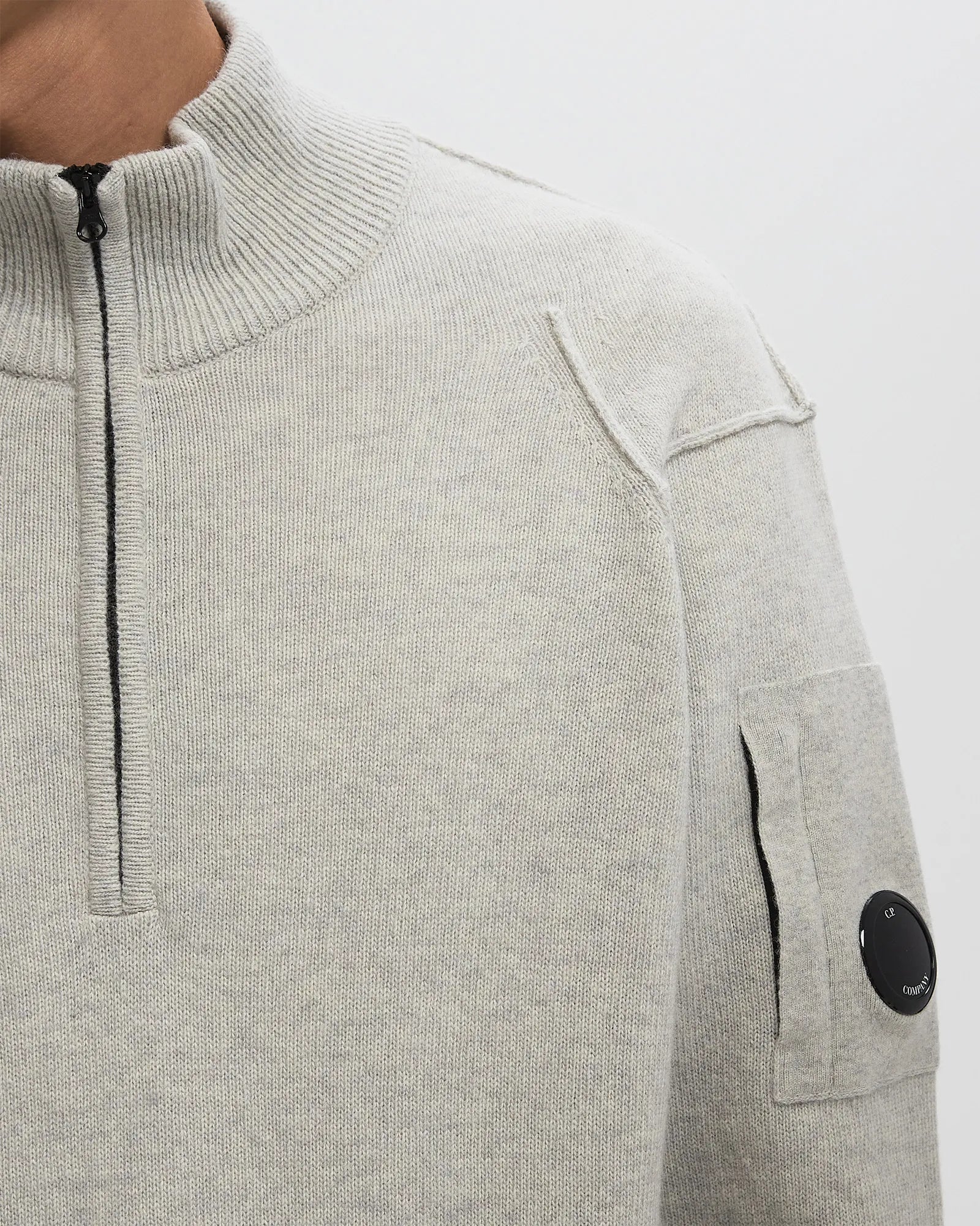 Cp Company 144A Lambswool Quarter Zip Knitted Lens Sweatshirt Off White Melange