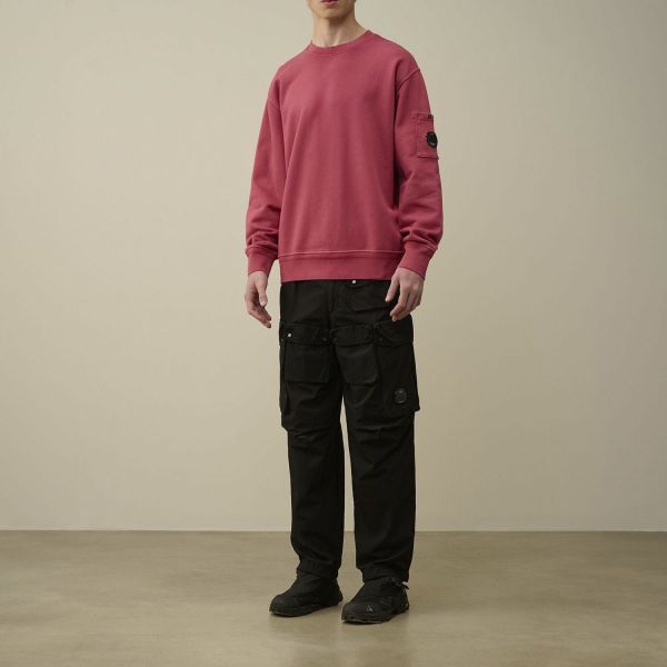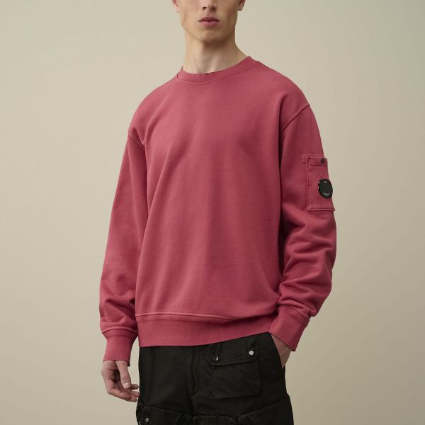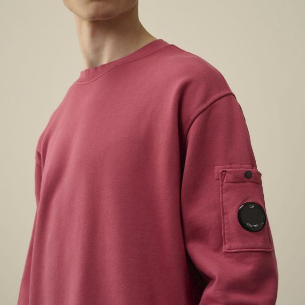 Cp Company Loose Fit Lens Diagonal Fleece Resist Dyed Sweatshirt In Red Bud