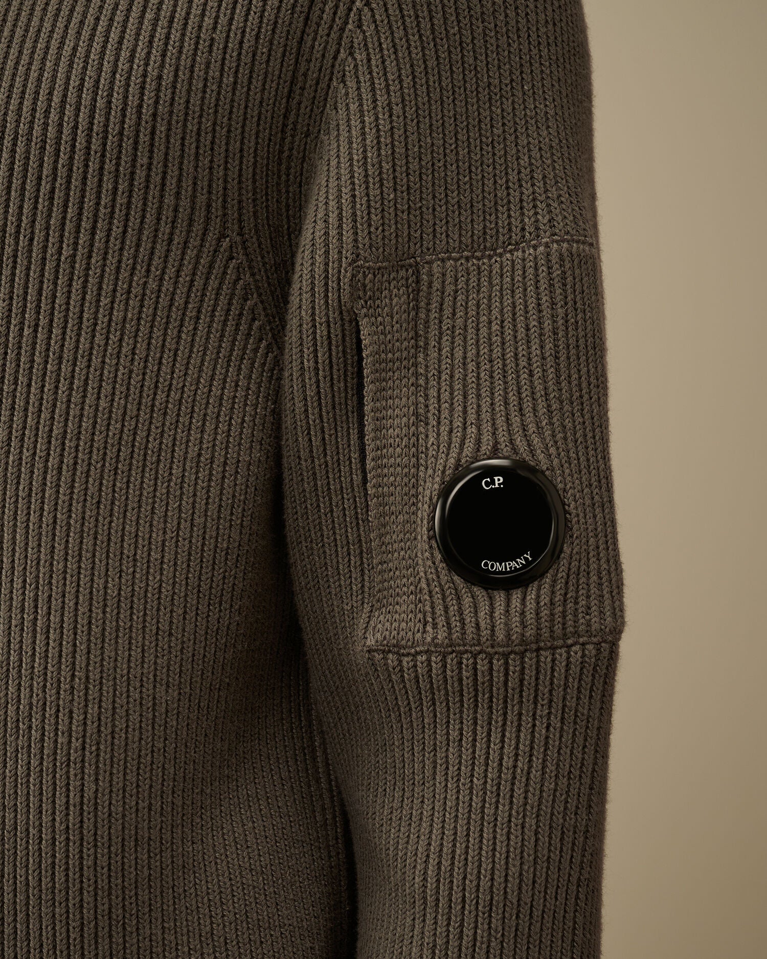 Cp Company 204A Lens Ribbed Wool Blend Knit In Olive Night