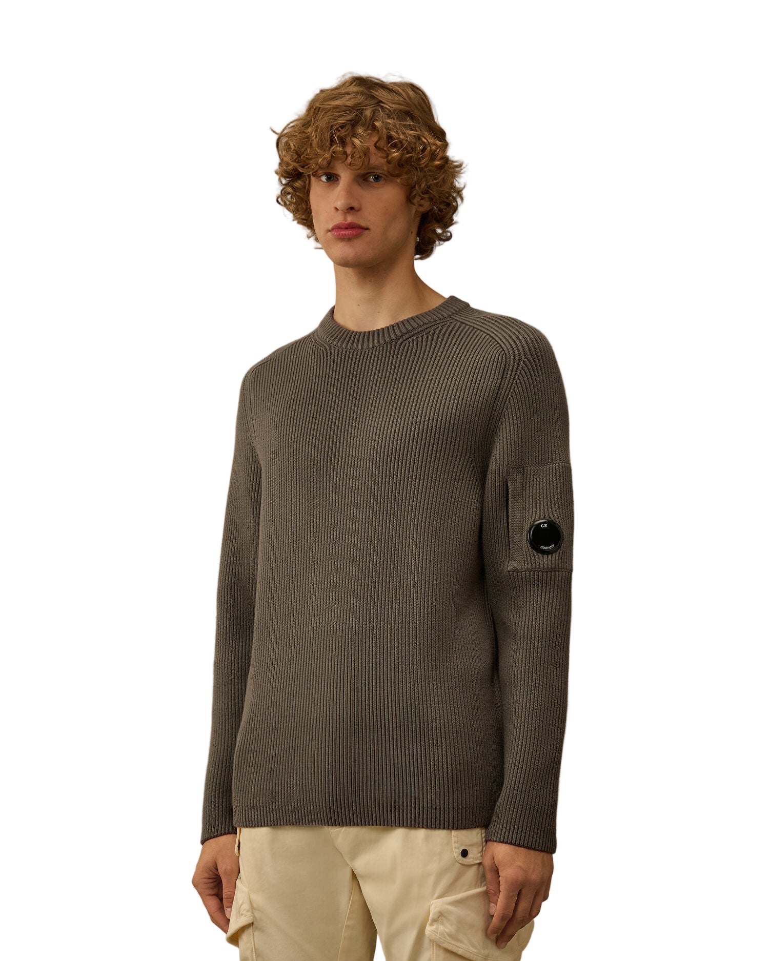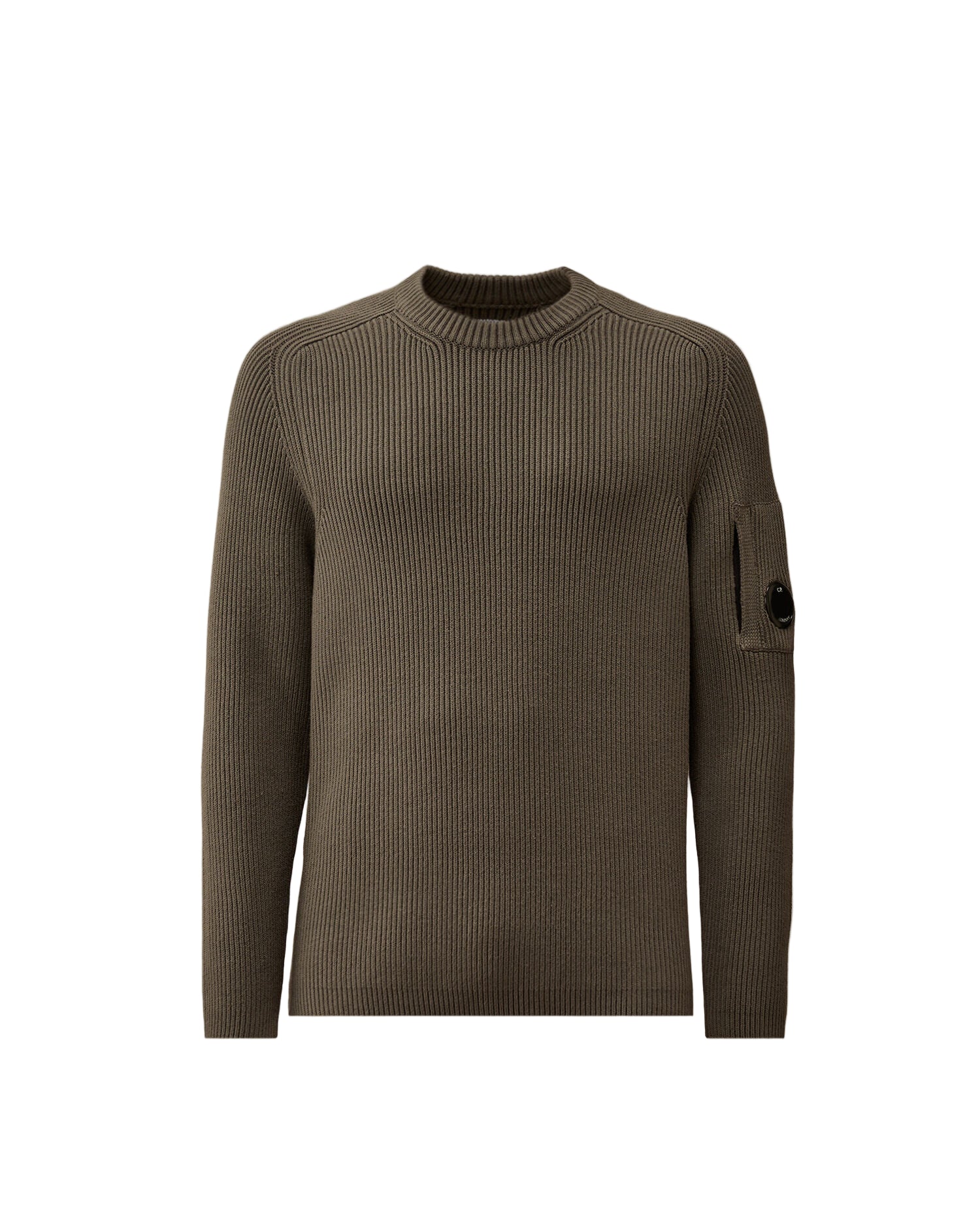Knitted crewneck jumper from C.P. Company in a ribbed design crafted from a wool/polyester blend. The regular fitting knit features ribbed cuffs & hem with the signature C.P. lens pocket to the left sleeve.