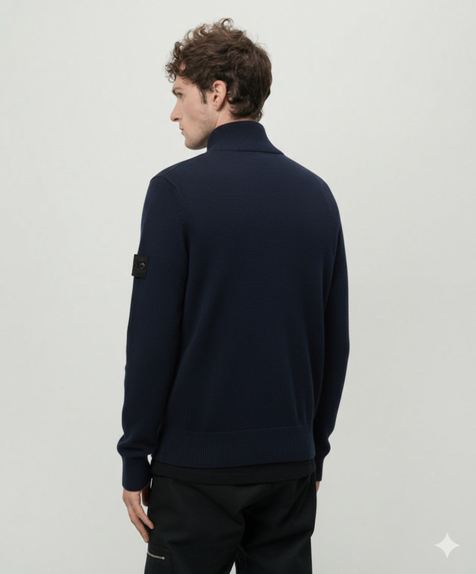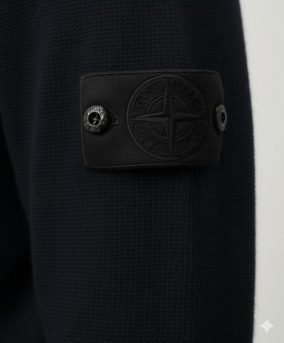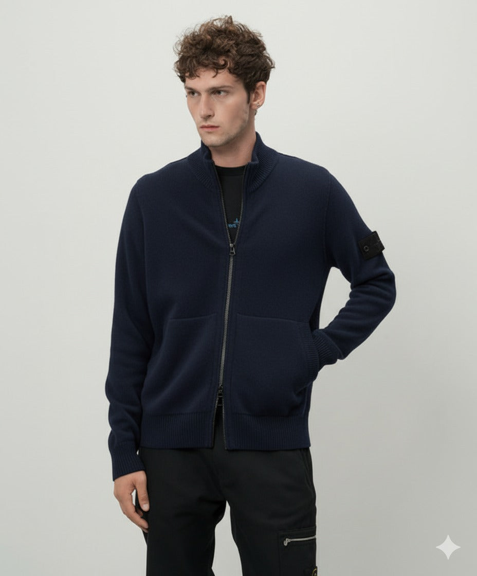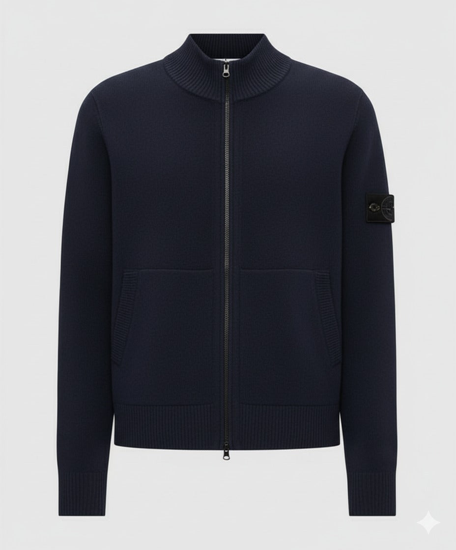 Stone Island Ghost Ribbed Full Zip Knit In Navy