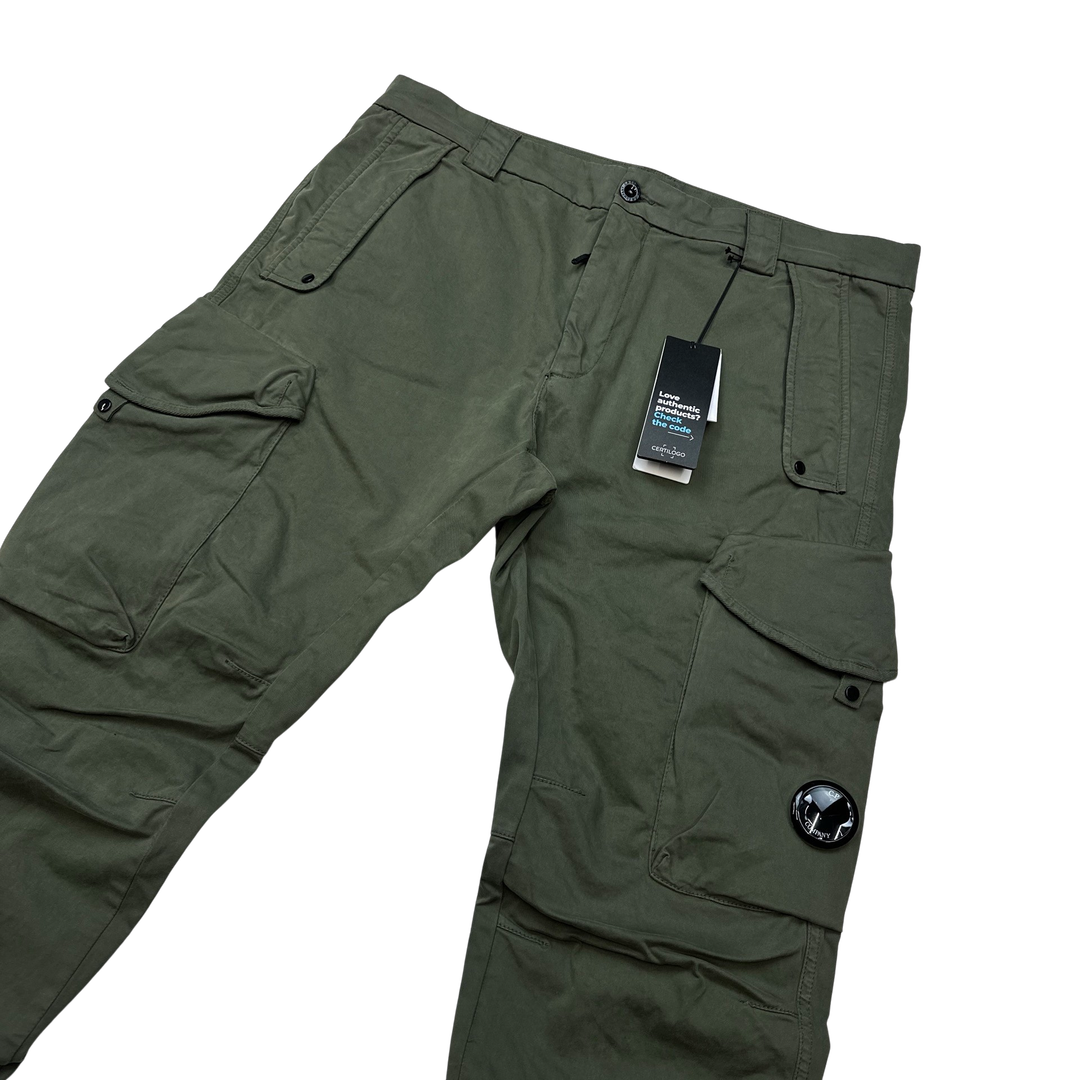 Cp Company Stretch Satin Lens Cargo Pants In Ivy Green