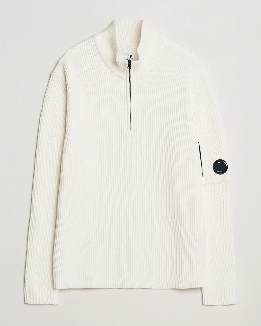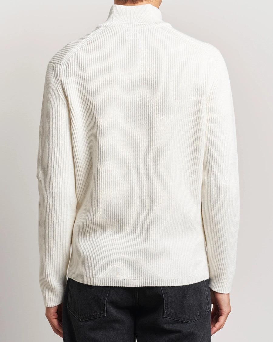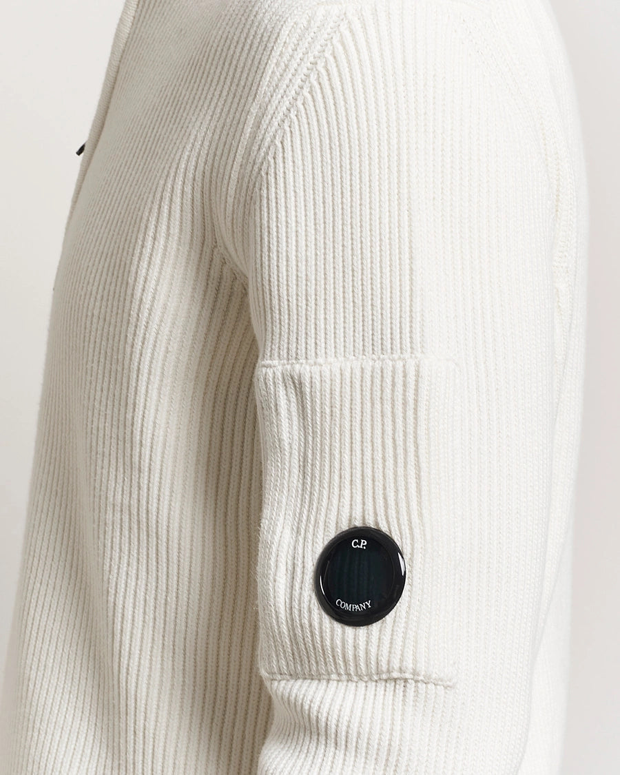 Cp Company 185A Full Rib Quarter Zip Knit In White