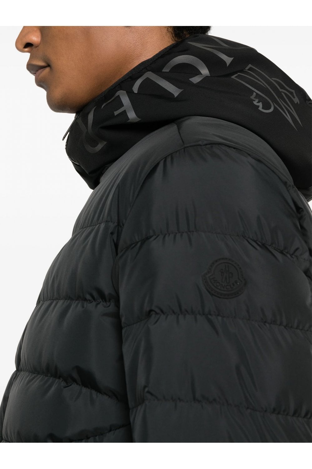 Refined and minimalistic, the Vernasca down jacket is emblematic of the Matt Black collection. The short puffer is crafted from an ultra-lightweight nylon fabric notable for excellent water-repellent properties. The jacket is embellished with discrete logo lettering on the hood.