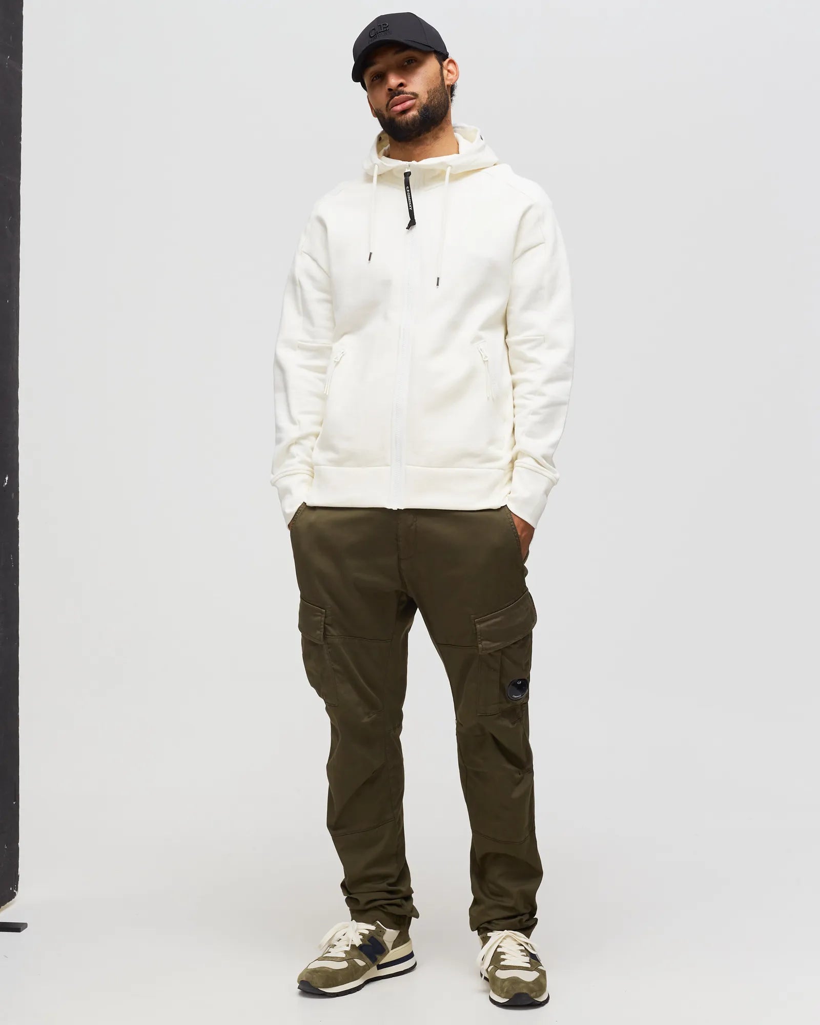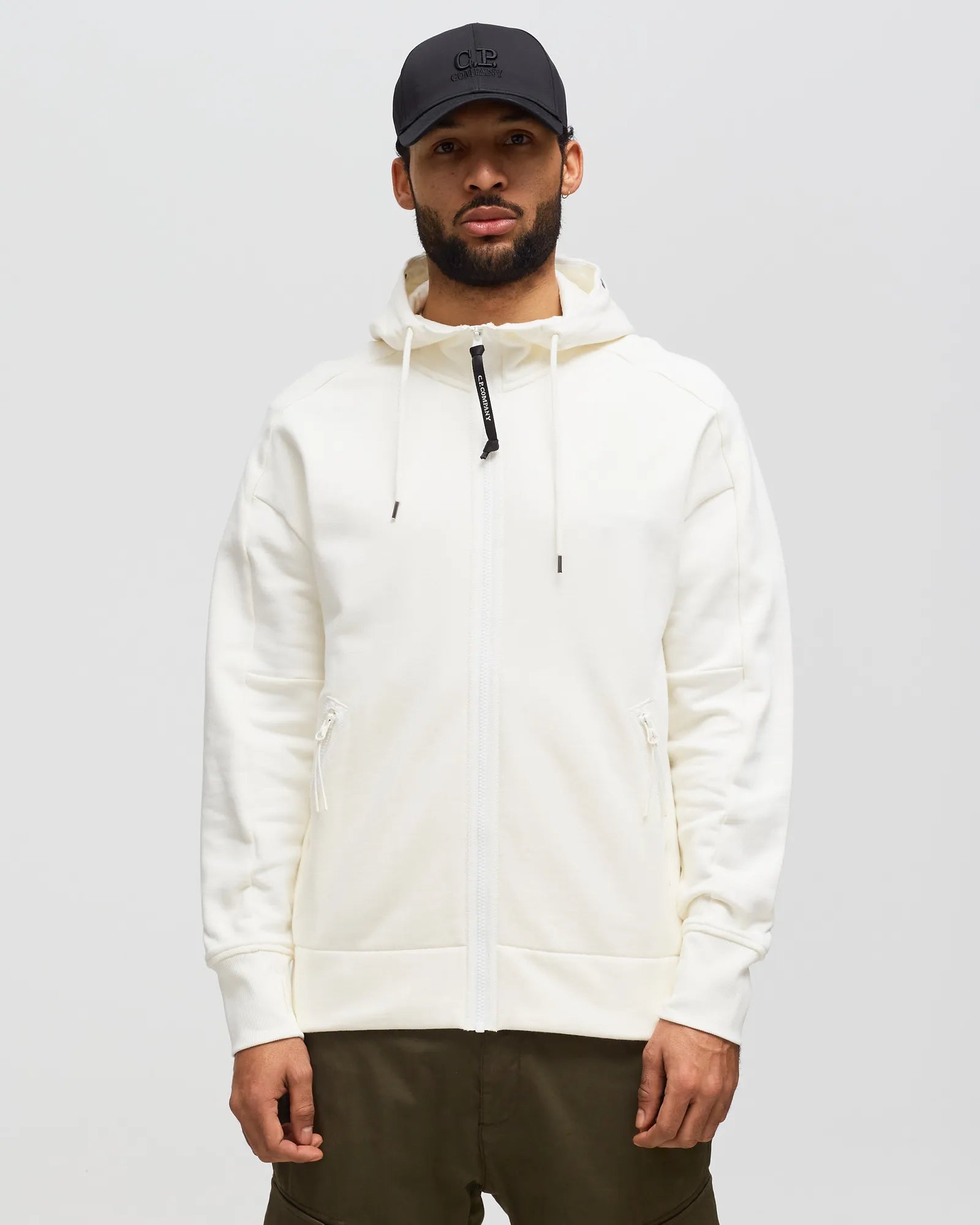 Cp Company Diagonal Raised Goggle Full Zip Hoodie In White ( Pre-Order Due Approx 8th Nov )