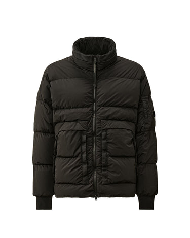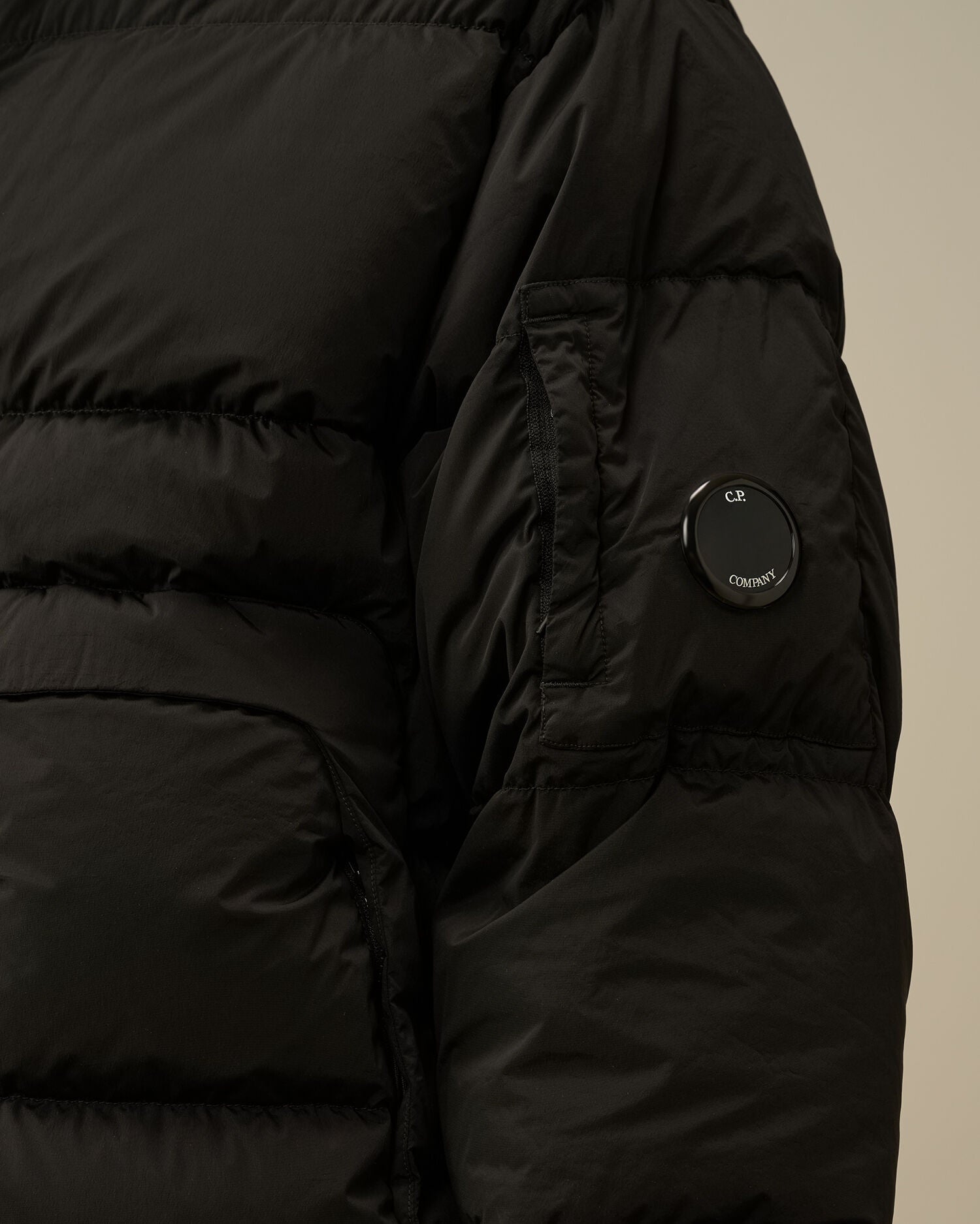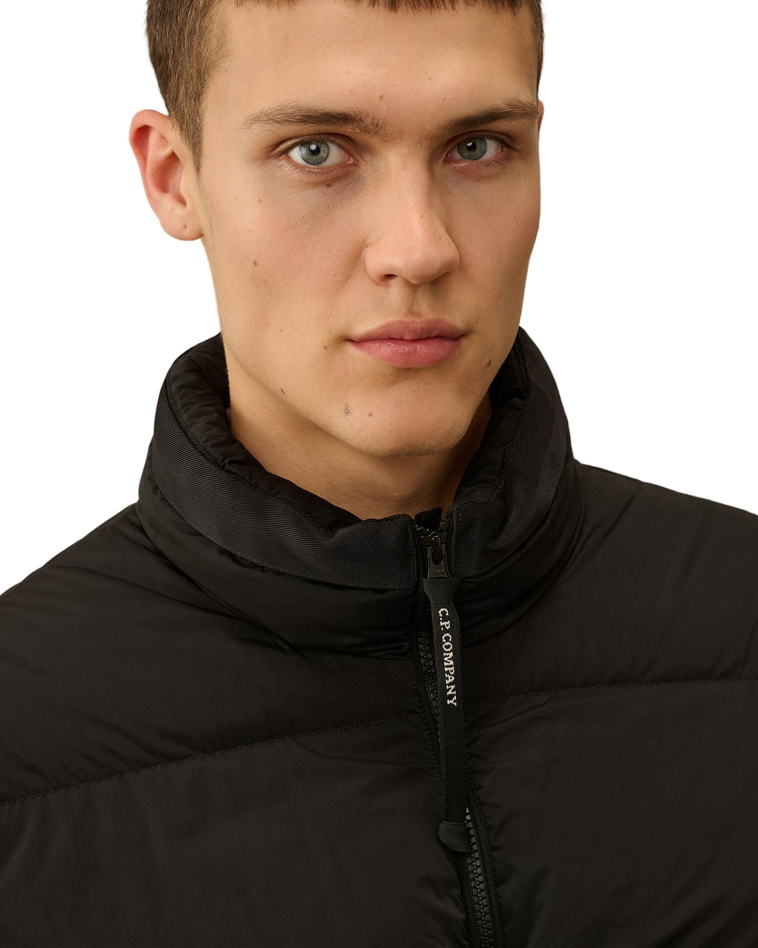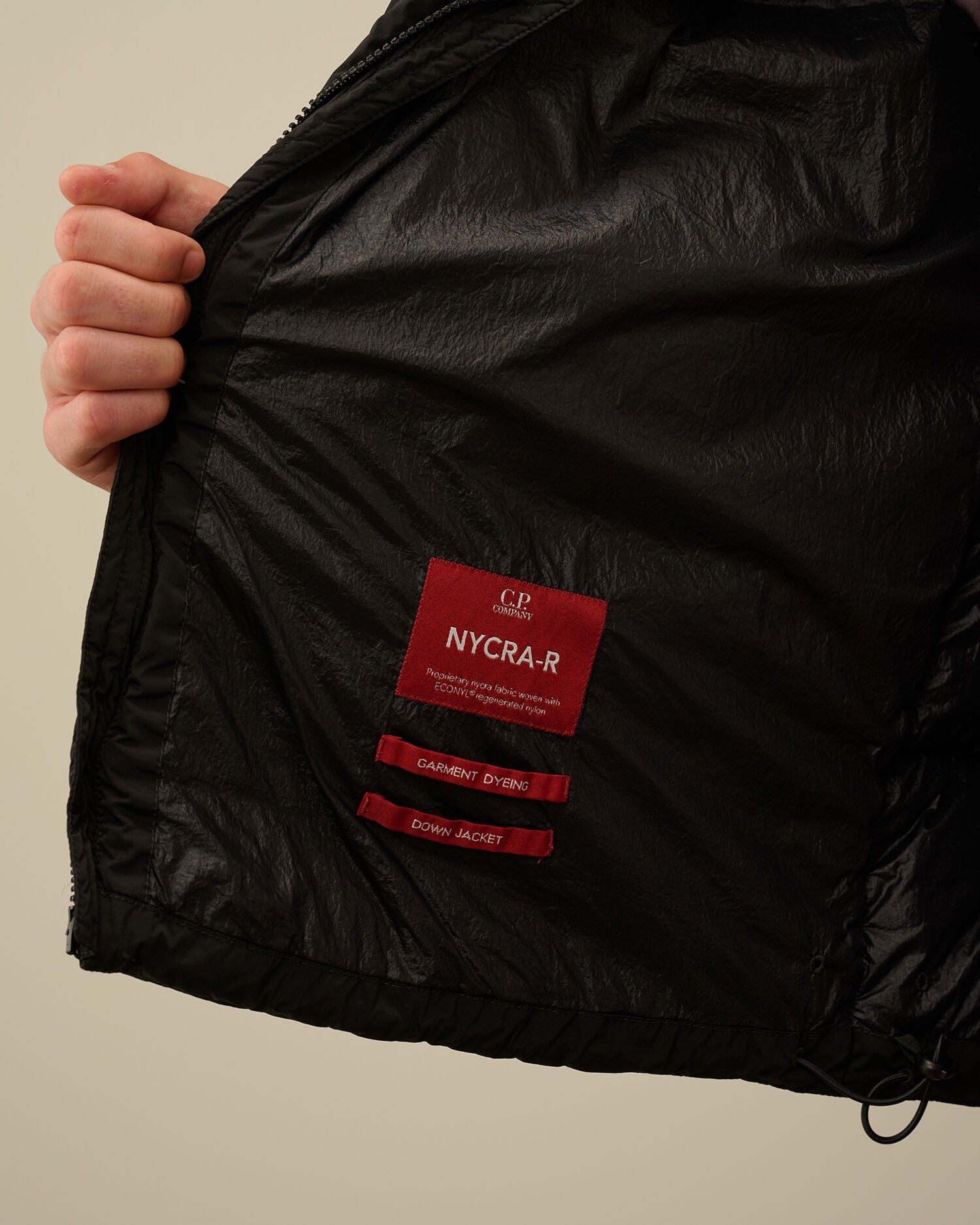 Short down jacket crafted in Nycra-R, made from ECONYL® 100% regenerated stretch. Garment dyed anti-drop treated.