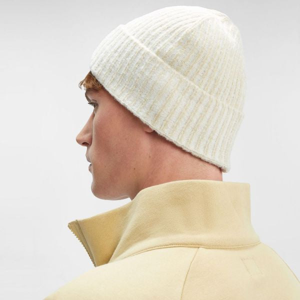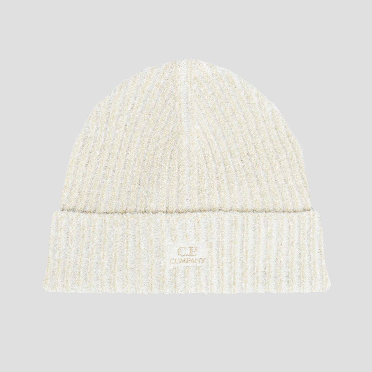 Cp Company Ribbed Embroidered Logo Beanie In Mojade Desert