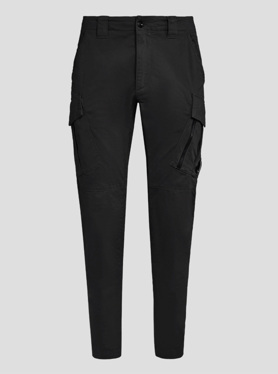Cp Company 124A Stretch Satin Lens Cargo Pants In Black