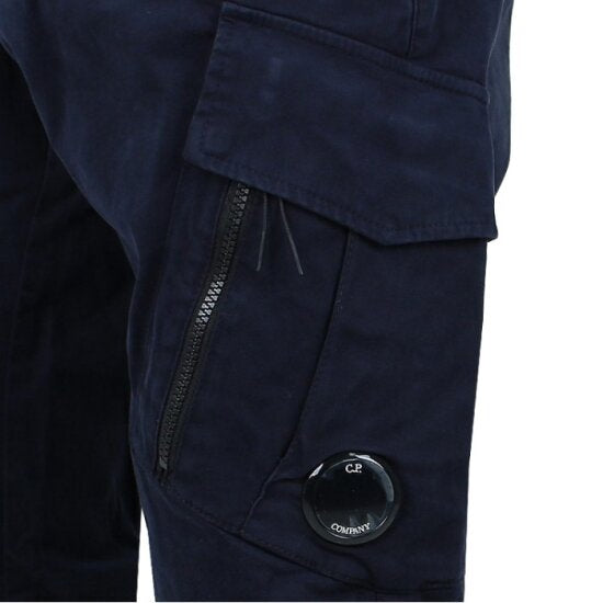 Cp Company 124A Stretch Satin Lens Cargo Pants In Navy