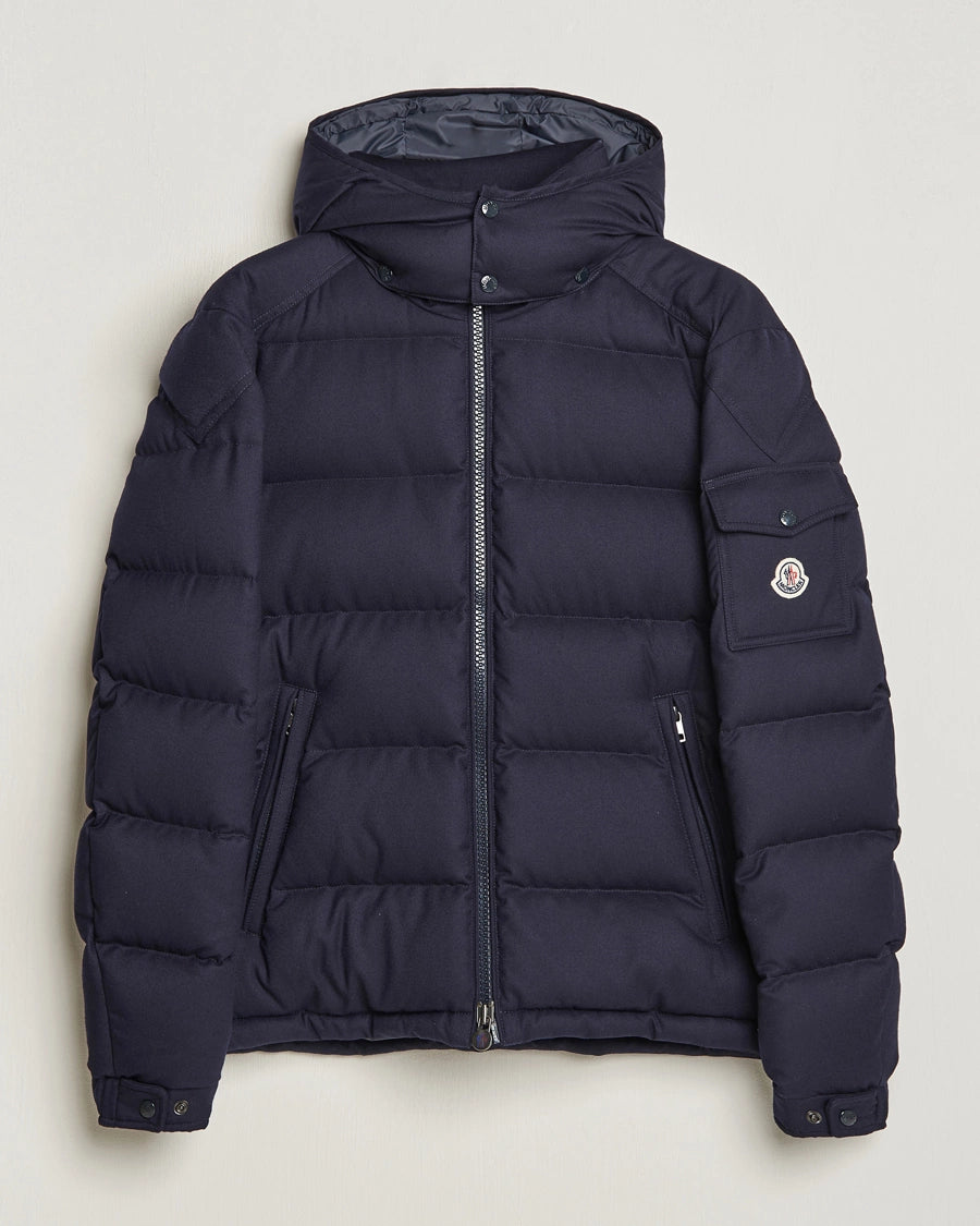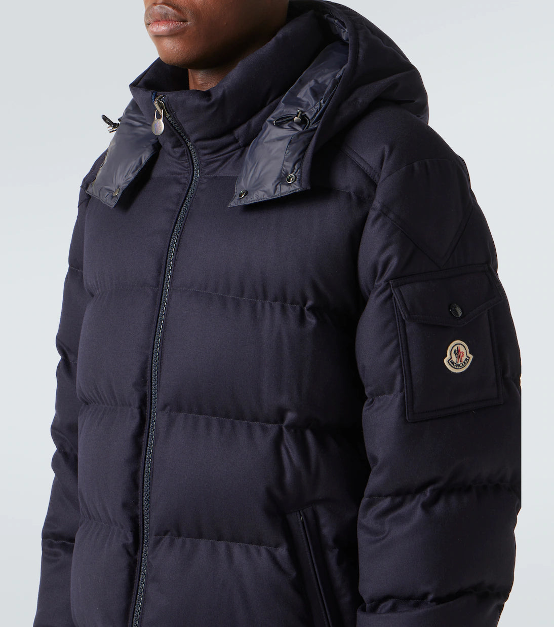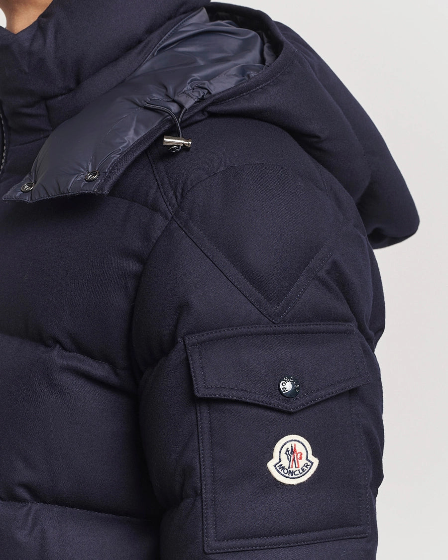 Moncler Montgenevre Hooded Wool Flannel Short Down Jacket Navy