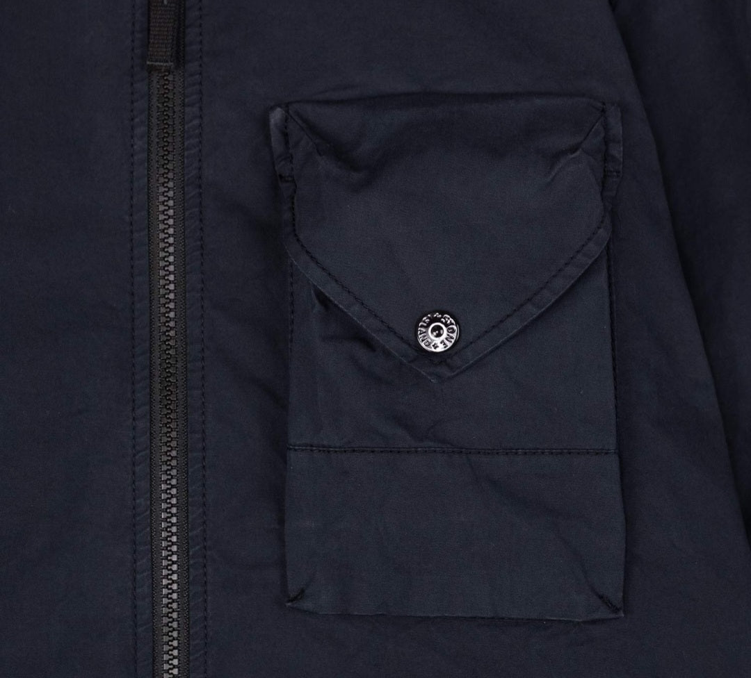 Regular fit. One bellows pocket on chest with triangular flap and snap fastening. Stone Island badge on the left sleeve. Tightening snap at cuffs. Two-way zipper fastening.